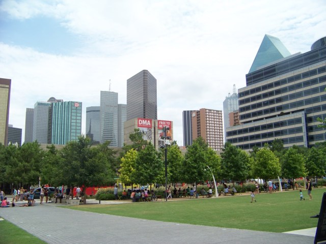 It was getting hot and I couldn’t go inside any of the buildings because I had Bentley with me, so we navigated back to the area around the Dallas Museum of Art. I hate to drive around looking for parking, so when I saw that the DMA had parking I pulled in, even though it is one of those creepy underground garages (told myself not to think about it!). Bentley was a little freaked out, but we got parked and were quickly on the street.