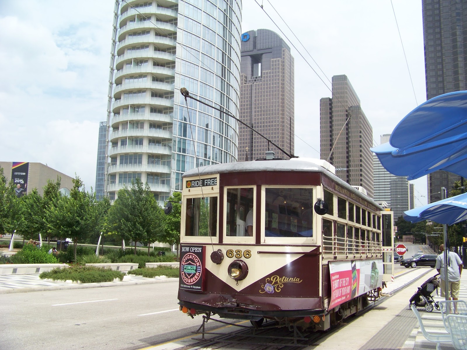 When I saw the M-line trolley parked along Olive Street we quickly made our way over and hopped on. It is free and dog friendly! We rode almost the entire route. I forgot to make a picture of the car we rode, but it was quite old. This one appeared to be a newer reproduction.