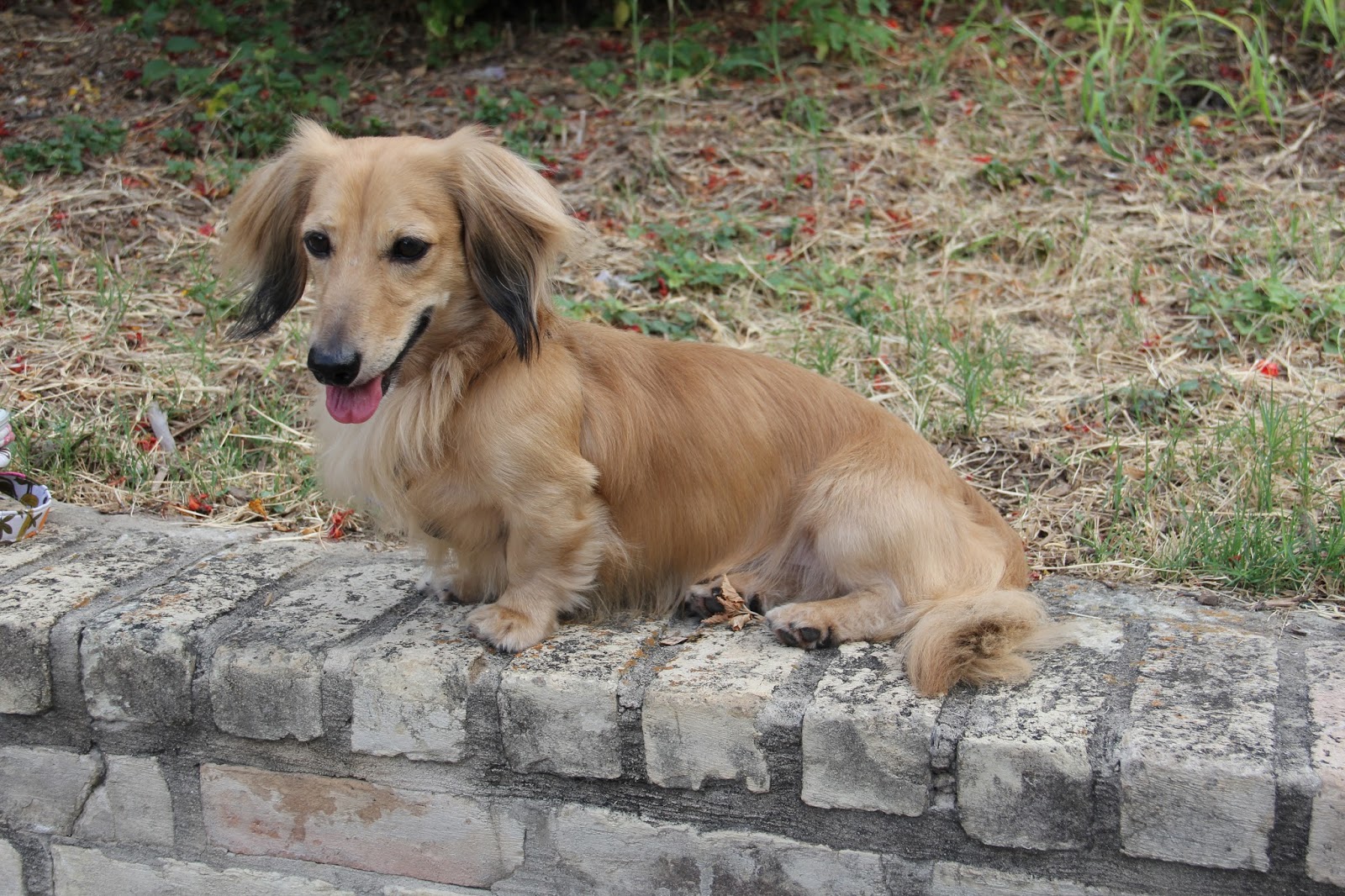 Bentley enjoyed the morning walk and the squirrels in the park! I was tempted to let him off leash, but thought better of it. Sorry little guy! He was content to smell around with his hound dog nose and then to sit on the little rock wall with me. What a good little companion he is!