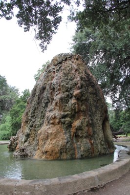 I was surprised this morning to see water gushing from the top of the grotto. I’ve never seen the water flowing here although I’ve read about it doing so in the past when there was still a flowing spring under it. I was surprised and then I remembered that with the abundant spring rains that the water restrictions were lifted, so apparently the city is pumping water up through the grotto. The fountains and water features can flow again!