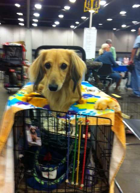 Bentley was the only dog in his class and there was only one other male dog, so we won our class and took reserve to the other dog. I’m not sure why the breed counts for long haired dachshunds are so low this year; usually this is a big dachshund show. But we visited around and enjoyed our morning. I am always pleasantly surprised to remember that people in the deep South are extra friendly (sorry Texas, they got you beat in the friendly competition). I had several people walk up to me, introduce themselves and chat like we were old friends. One lady even thanked me for coming and supporting the show!