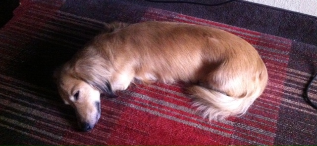 Poor little puppy! He’s now curled up in my lap sleeping while I write. How he curled up that long body enough to sleep here I don’t know!