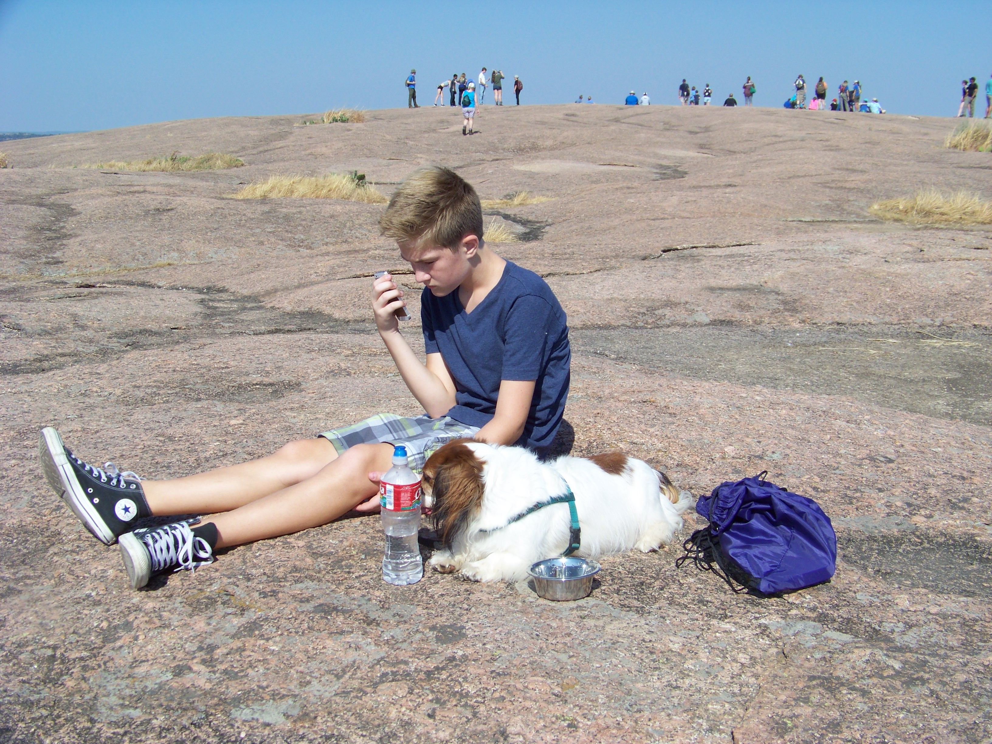 100_8777Sawyer is a rock climbing, adventure loving dog!  I was mindful of keeping an easy pace for him, but he never seemed to struggle (like the humans!).  On the way down I dropped his leash several times when there were only a few scattered people around us and no dogs in sight.  He scampered down the rock like a little mountain goat.