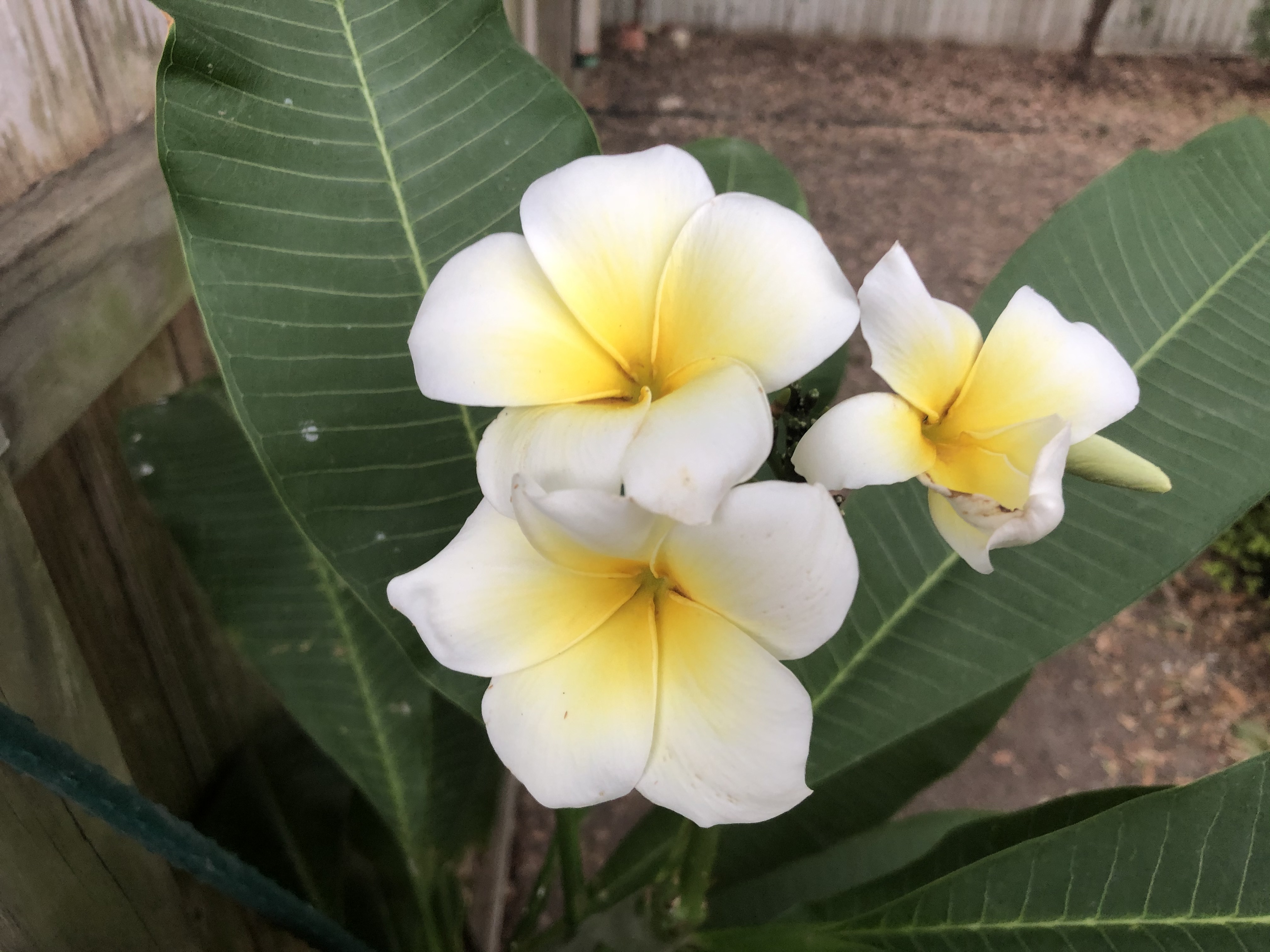 This plumeria had been more than just a plant that I wanted to survive and thrive.  I babied and pampered it because the man who had given me this had been bravely battling MS for many years.  The pool and his flowers were his delight, after his wife and 2 daughters, of course! Brad lost his fight with MS in January, just before COVID roared in. I really feel he sent these blooms to me as a sign to remember to experience peace in my heart and trust that God is in control and all is well.