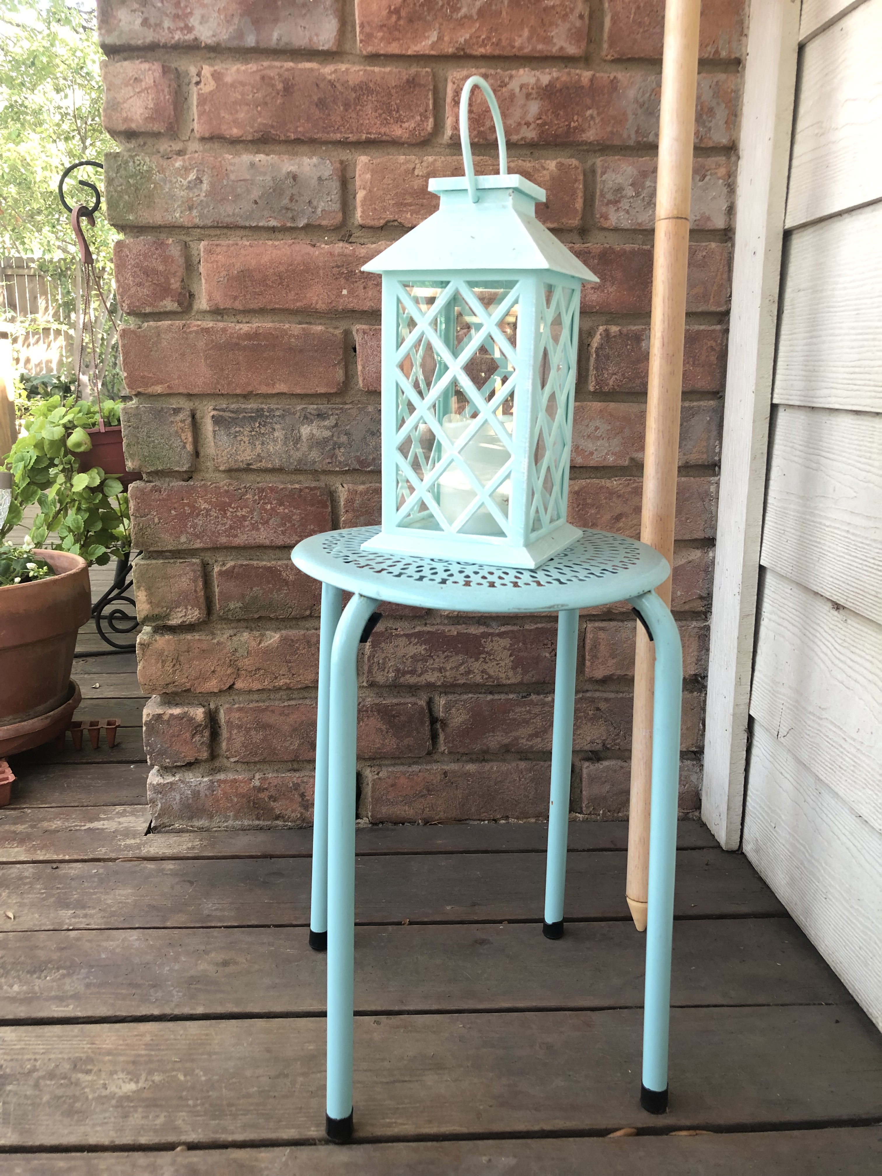 I thought that was all I needed until a few days later the Dollar Tree (DT) had little tables and matching solar lanterns that called to me. So I picked out the light blue-green color (they also had black and red) and came home very pleased, but also wondering exactly how long a flicker candle from the DT would flicker. I decided that if it made it through the summer I had gotten my $5 worth of light for the deck. Both the table and lantern were perfect additions to the deck decor and each night I sat outside very peacefully waiting for the lantern to come on. Being outside from late evening through dusk to sunset is one of my favorite things to do unless 1) it is hot and humid 2) there is no breeze and 3) the mosquitos are biting.