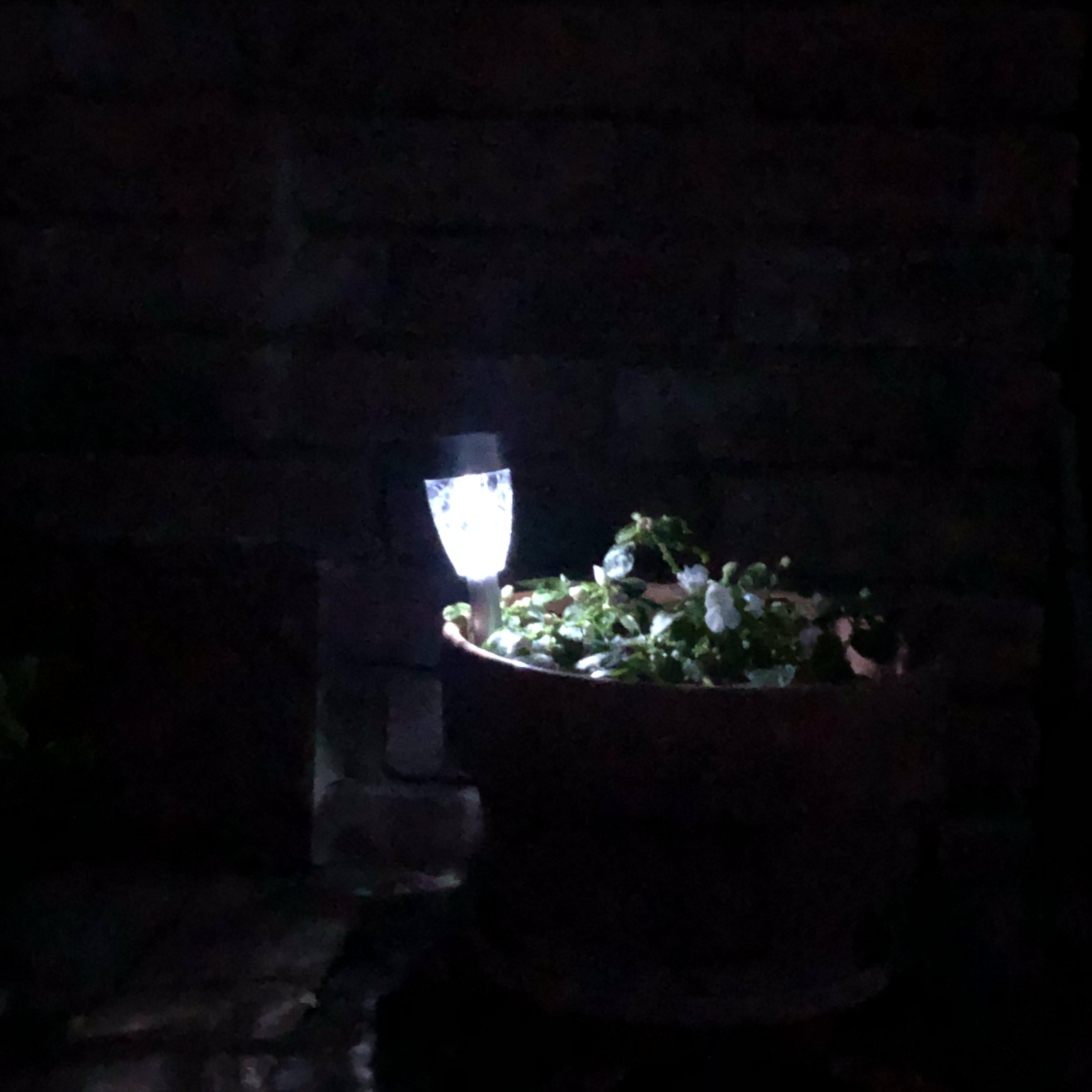 To console myself I picked up several of the $1.25 yard stakes, again wondering how long something that cheap would last and hoping they would make it through the summer and maybe into the fall. These don’t flicker and they are LED and while they have a white light it only radiates a short distance which is perfect to just shed a little light here and there.