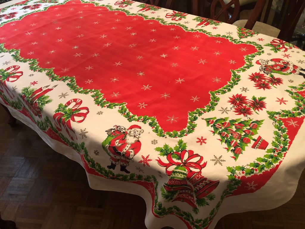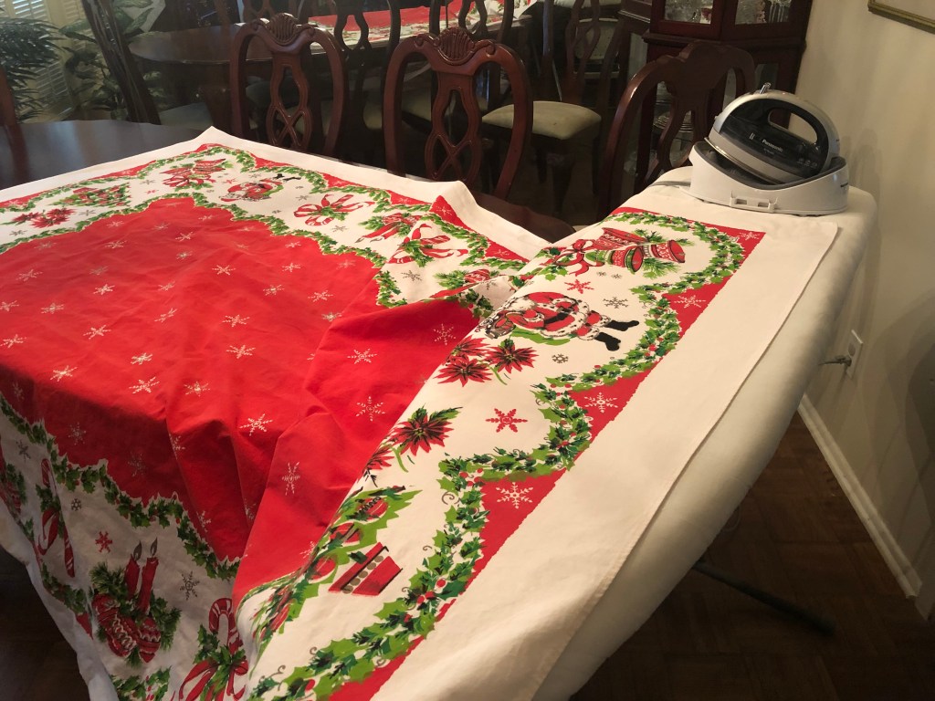 Yes, this post is about a Christmas tablecloth. Yes, Christmas was a week ago and for some, like my OCD neighbors who took down their outdoor lights on Christmas Day, Christmas is over. But I’ve had this post in my mind for several weeks and just could not make myself sit down and write it out. I really want to share it with you, dear readers. So, before the New Year rings in in a few hours, I’m sharing this short story!