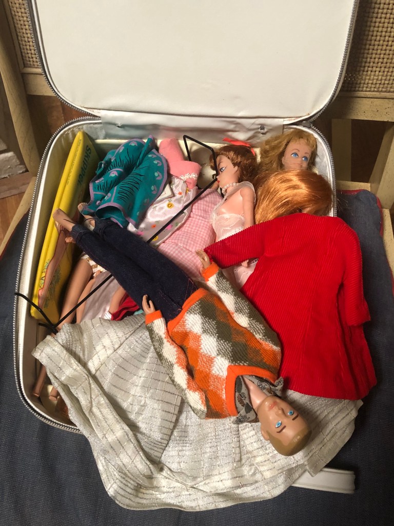 It wasn’t pretty to see my beloved Barbie and friends in such a disastrous state. How could this have happened I wondered. Then I remembered letting my precious little twin granddaughters play with them one night. Most likely when one of their parents helped clean up they just stuffed everything in the cases and zipped them shut. I could not bring myself to start sorting through the mess.