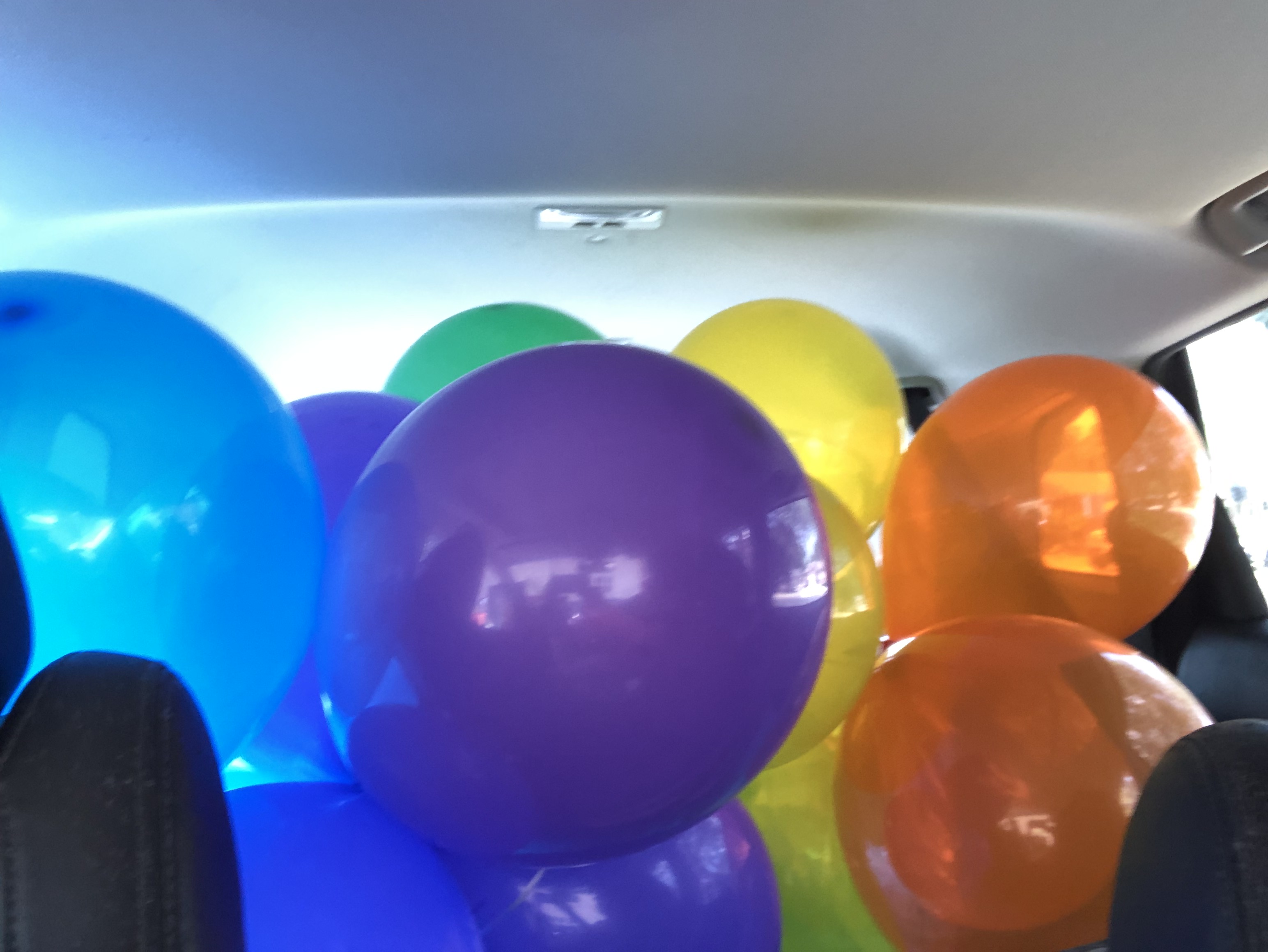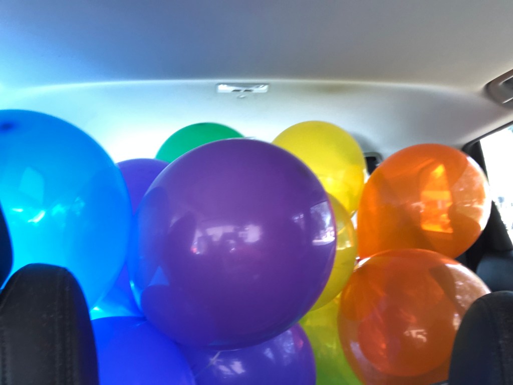The back of my car filled with the doomed balloons. Nice and cool at that time!
